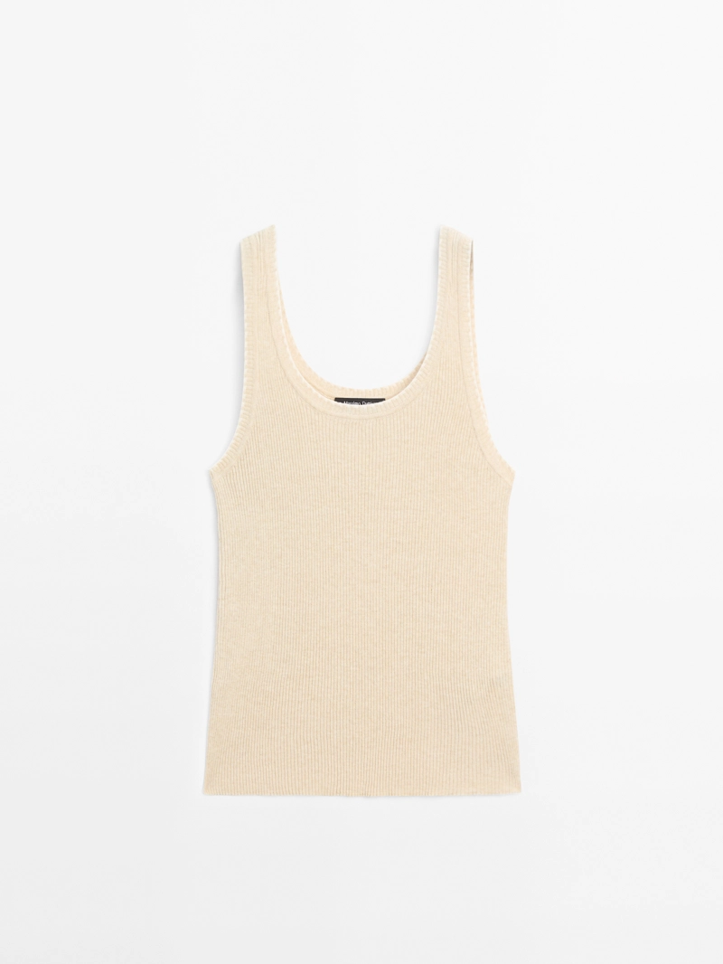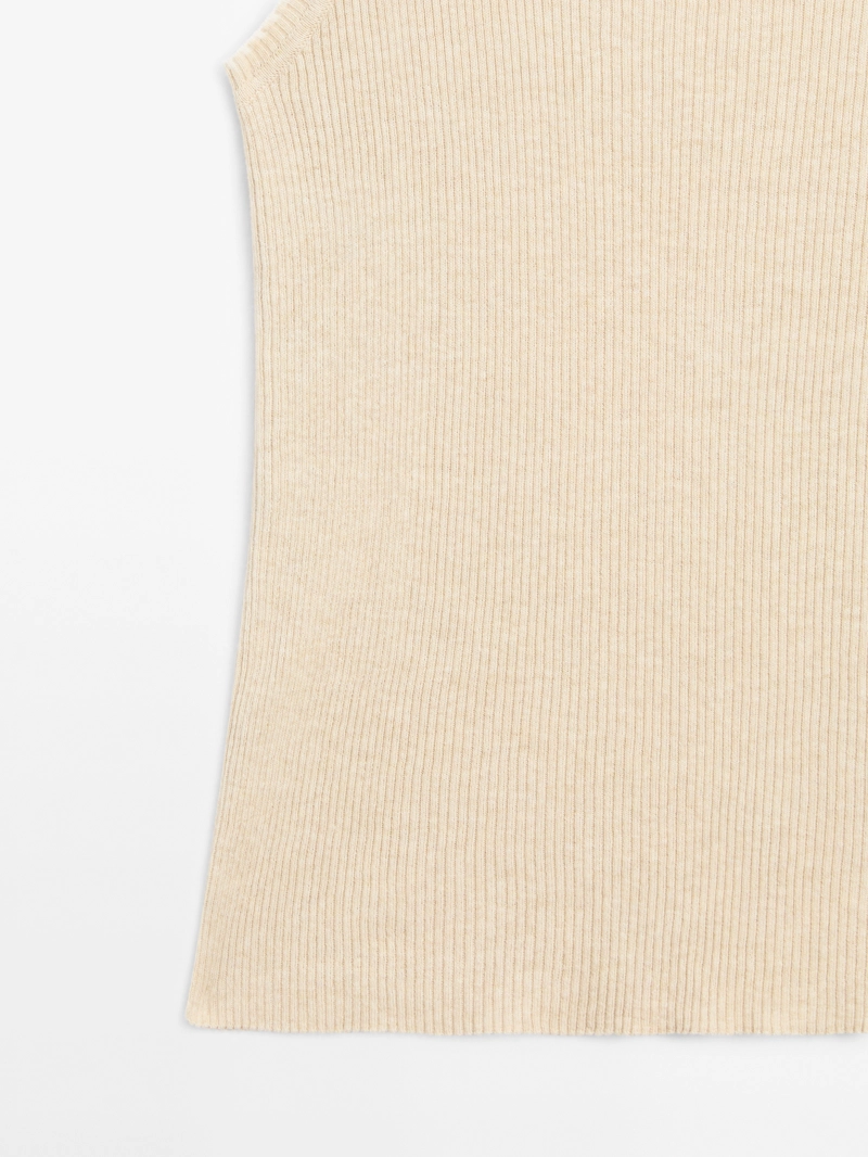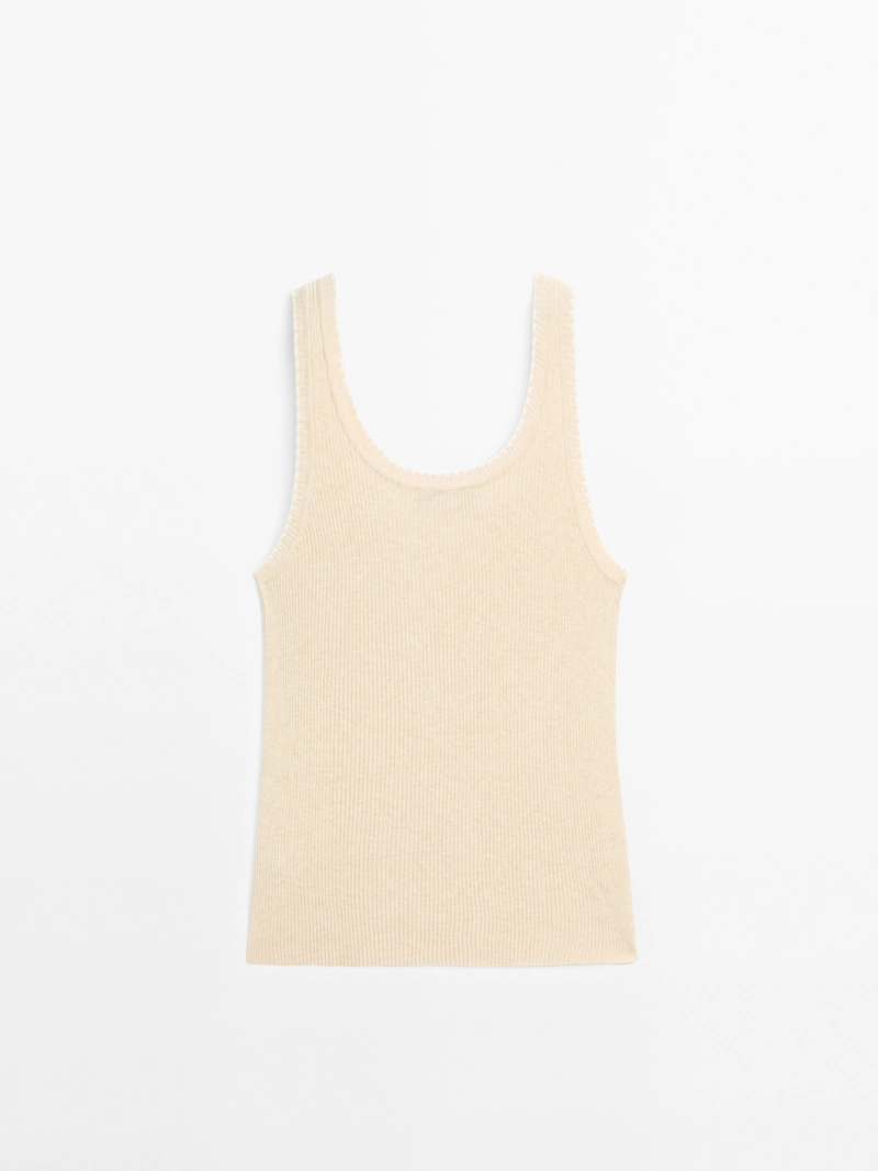 Топ из 100% хлопка с контрастными деталями BEIGE MARL|6839/941