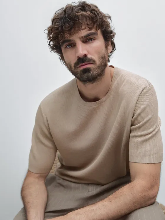 Вязаный джемпер с коротким рукавом из 100% хлопка BEIGE|0919/364