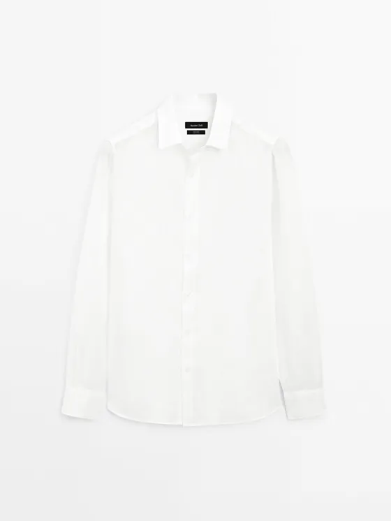 Рубашка приталенного кроя из 100% льна WHITE|0100/777