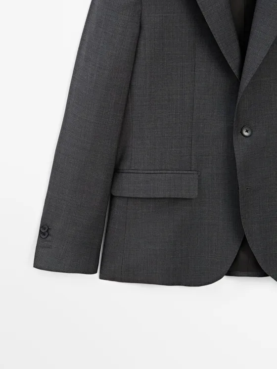 Клетчатый пиджак от костюма из 100% шерсти GREY|2044/644