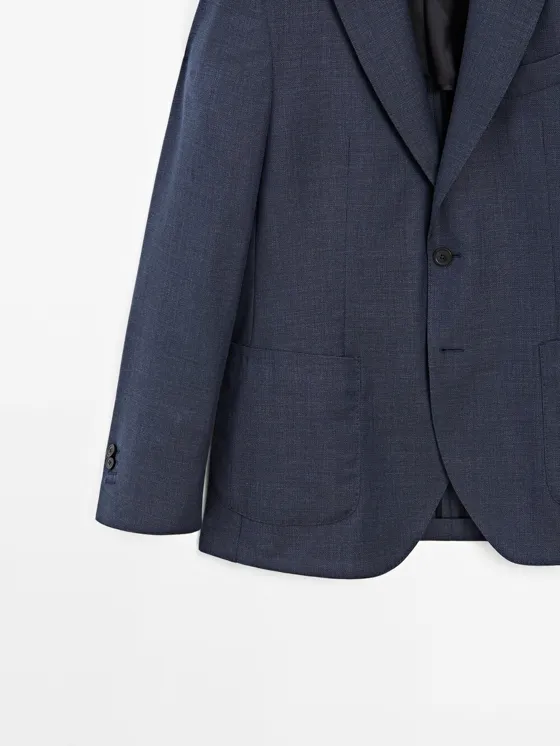 Блейзер с текстурой из 100% шерсти NAVY BLUE|2023/623