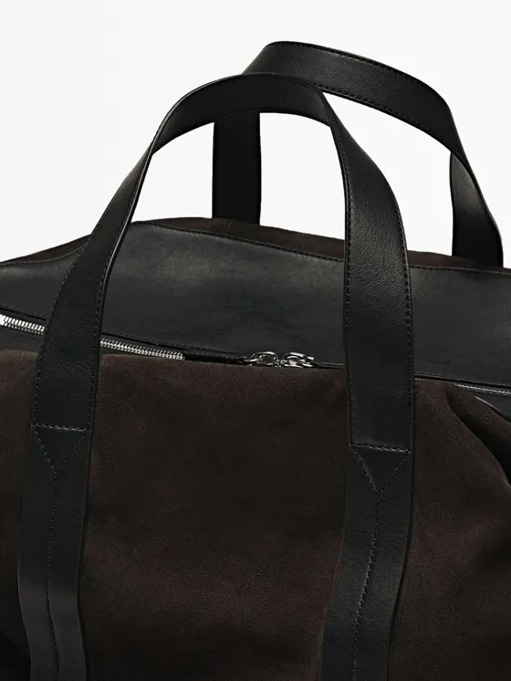 Спортивная сумка-боксер из замши и кожи наппа BROWN|2143/465