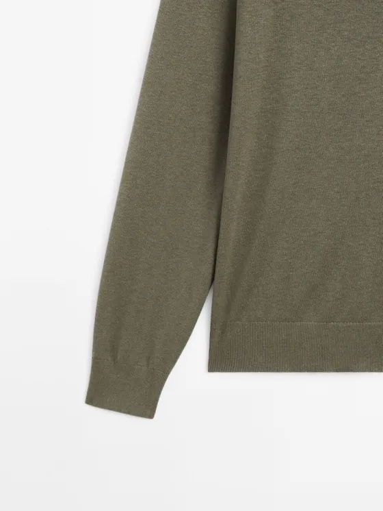 Вязаный свитер из смеси хлопка и льна KHAKI|0936/384