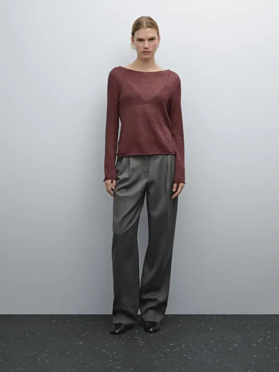 Свитер ажурной вязки из хлопчатобумажной смеси MAROON|5738/696