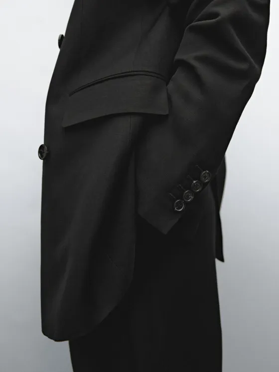 Двубортный блейзер из льняной смеси BLACK|6075/977