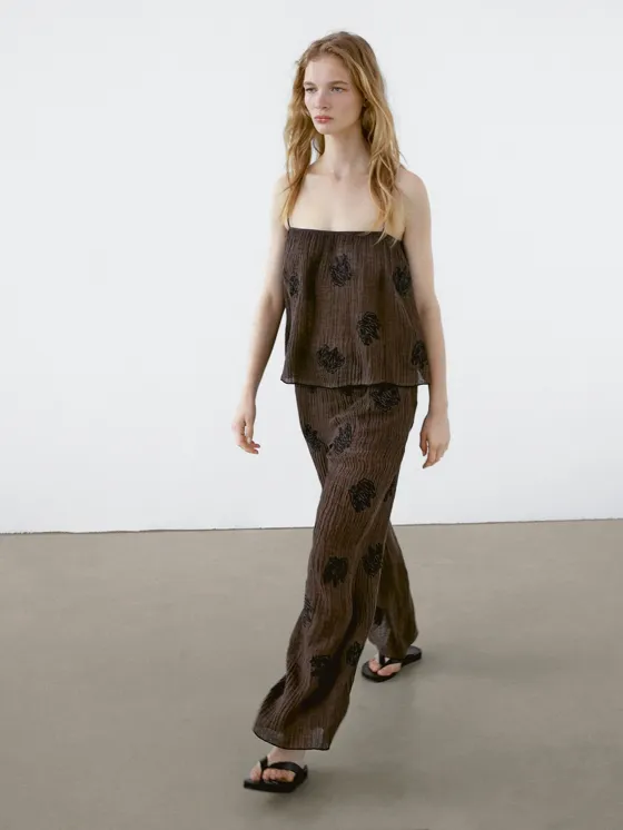 Топ с текучей текстурой и вышитыми деталями