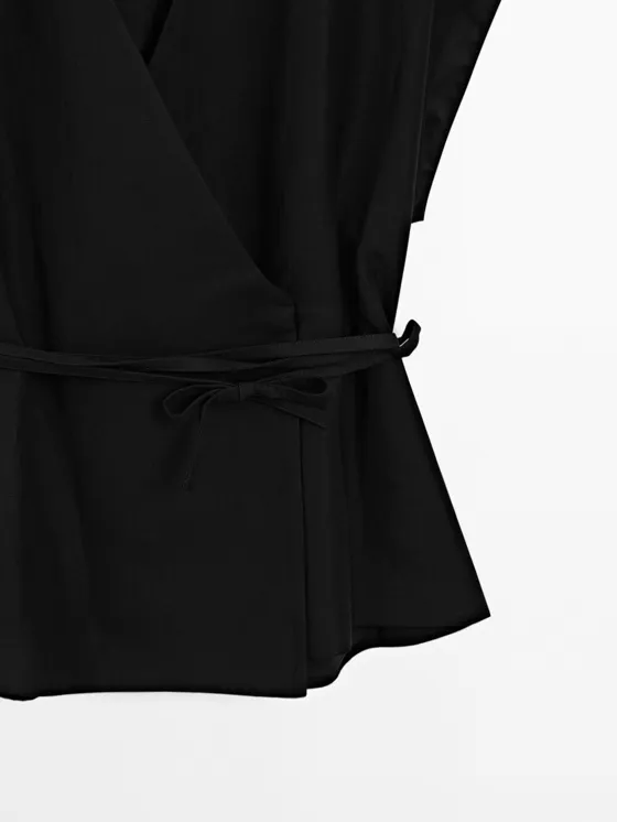 Рубашка-химолго с перекрещивающимся пояском из льна BLACK|6099/977