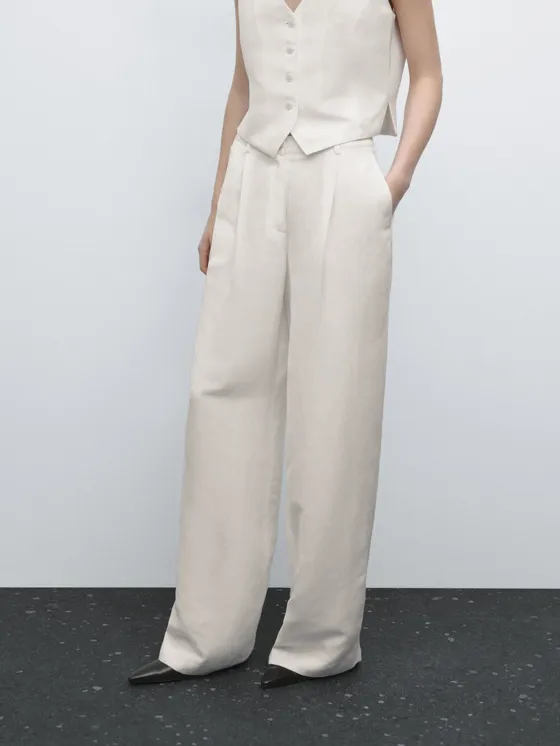 Брюки с льняной пряжкой в деталях CREAM|5097/977