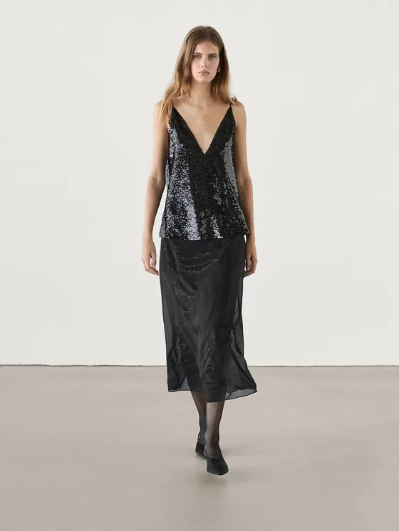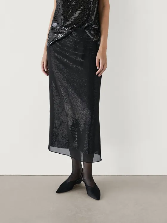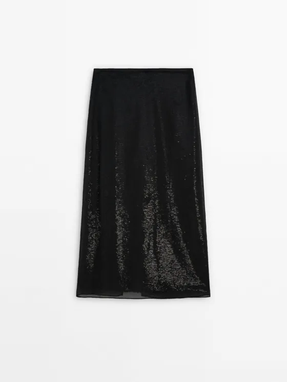 Юбка миди со скрытыми пайетками BLACK|5251/550