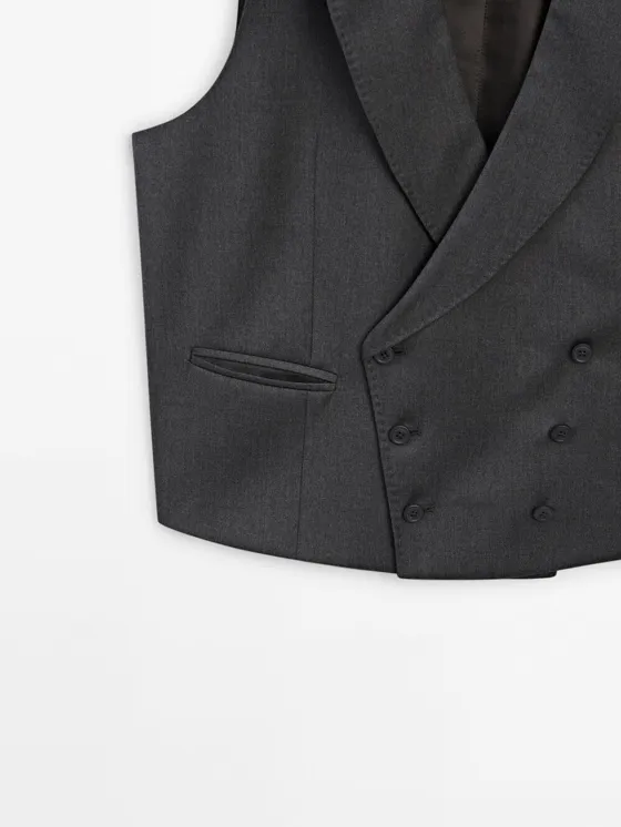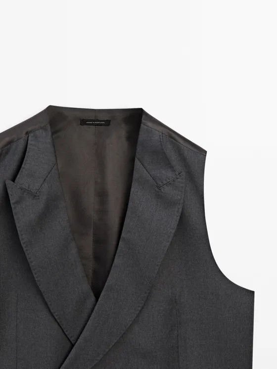 Однотонный костюмный жилет из 100% шерсти GREY|2710/635
