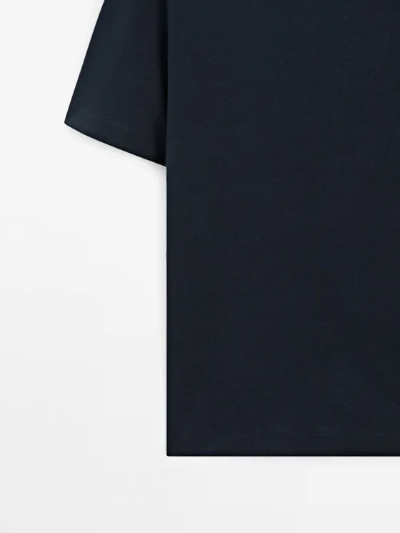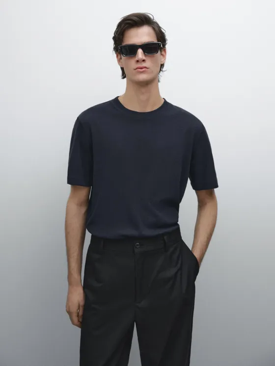 Футболка с коротким рукавом из льна и хлопка NAVY BLUE|1412/242