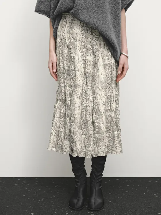 Юбка миди из смесовой шерсти с принтом под змеиную кожу