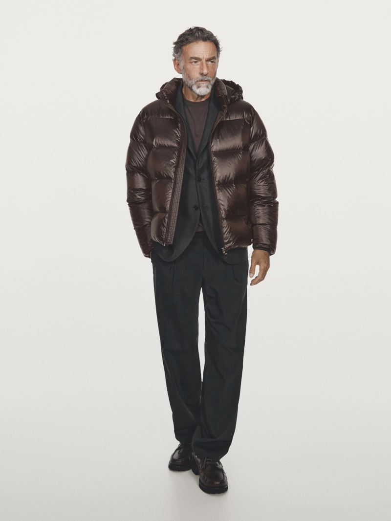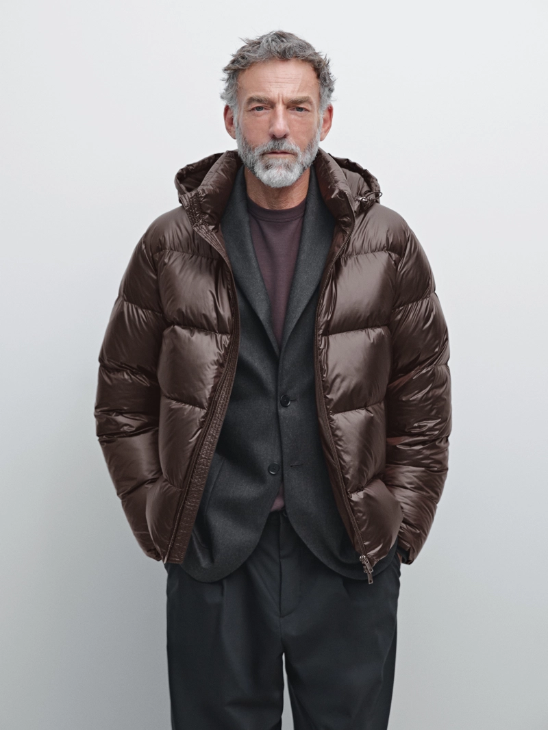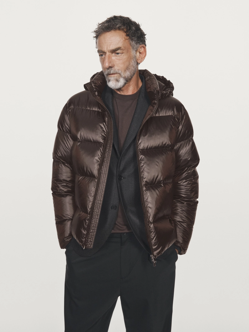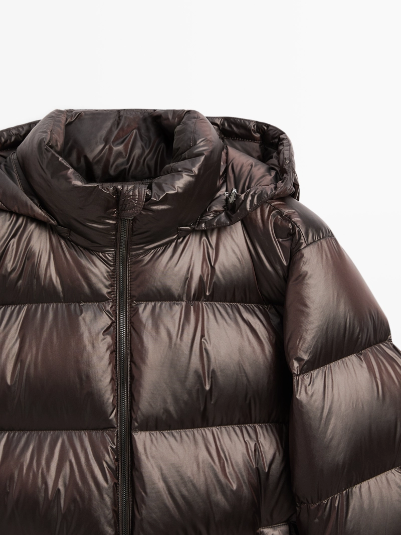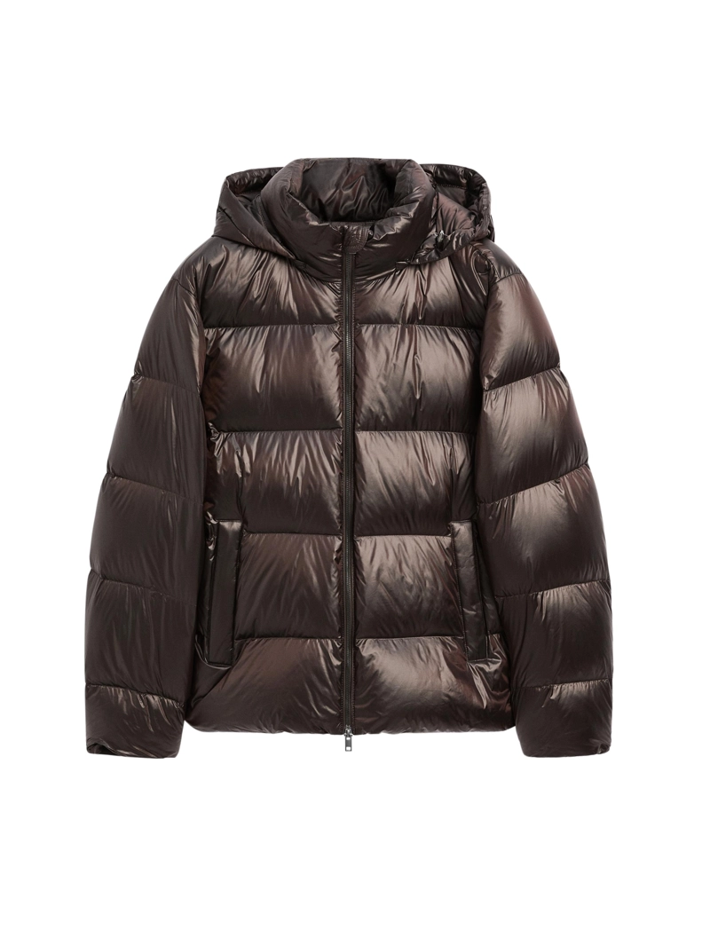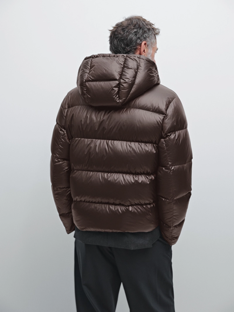 Пуховик из водоотталкивающего атласа BROWN|3121/410